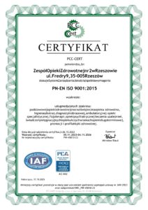 Posiadamy Certyfikat dla Systemu Zarządzania wg normy PN-EN ISO 9001 : 2015